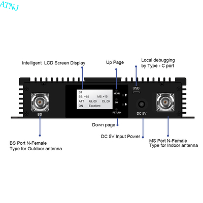 Guadagno massimo | UL:≥65±3dB DL:≥70±3dB |